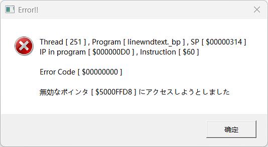 無効なポインタ [ $4FFFFFD8 ] にアクセスしようとしました